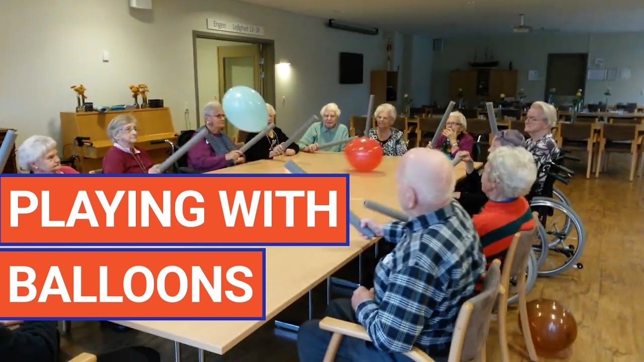 These elderly people needed to get active and move their bodies, so their caretakers had them sit around a table and use long paper tubes to hit balloons at each other.