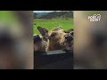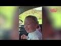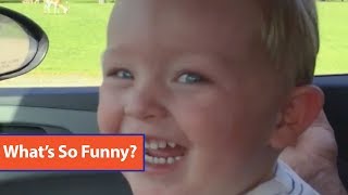 This little boy couldn't contain his laughter as he watched an ostrich stick its head into his car and eat some treats from a cup. His smile was from ear to ear as the giant bird repeatedly pecked at its food.